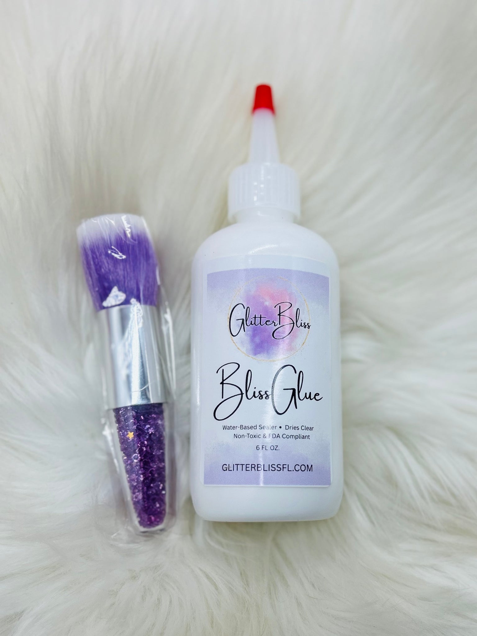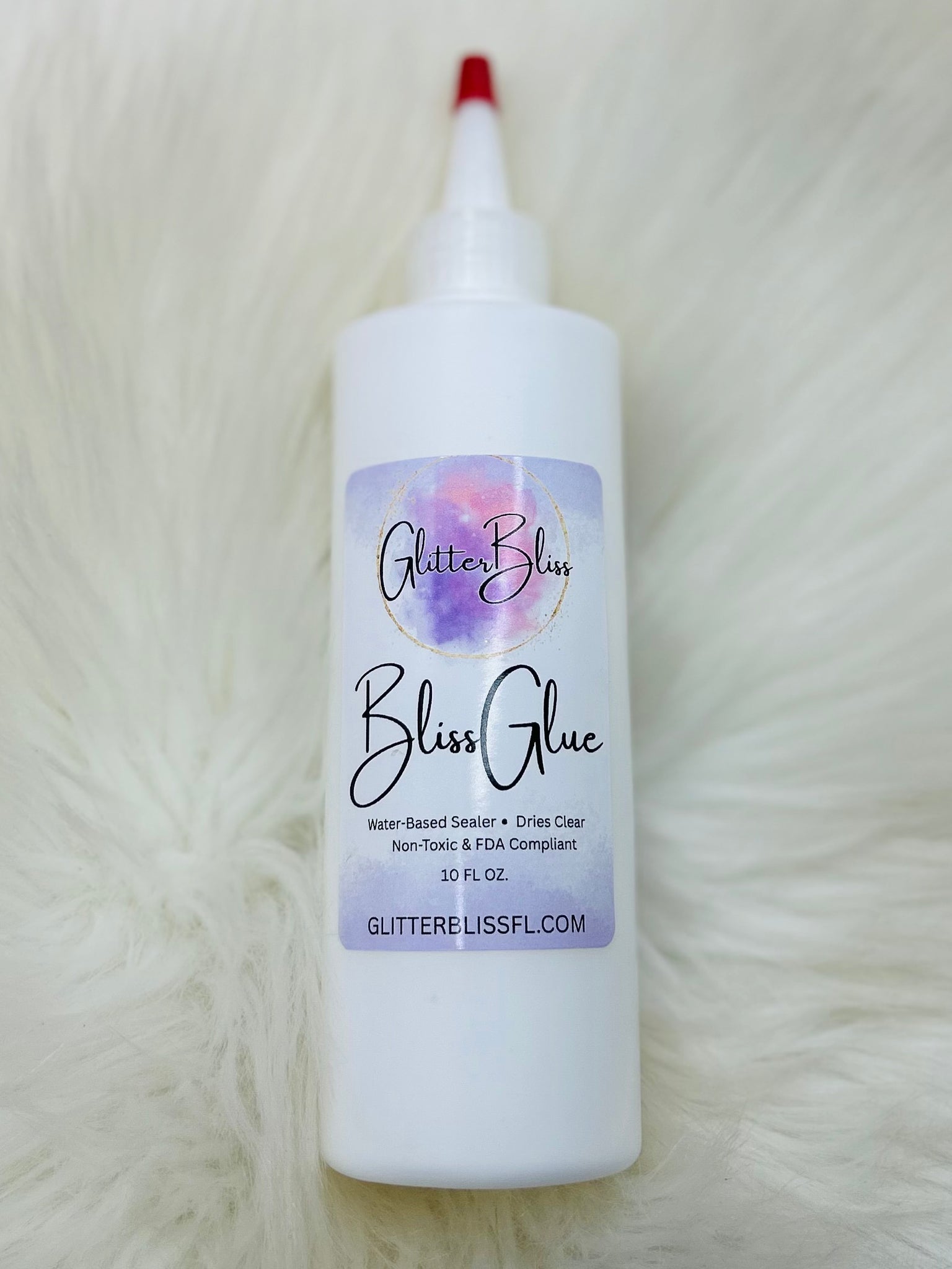 BlissGlue is a non-toxic glue that is perfect for sealing or adhering glitter to items.