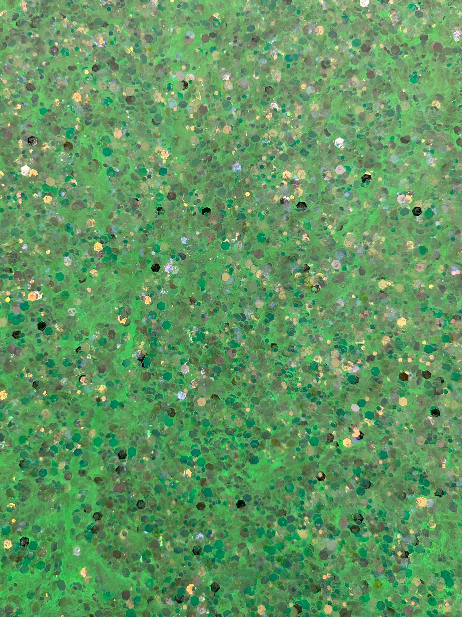 - White to green glow glitter